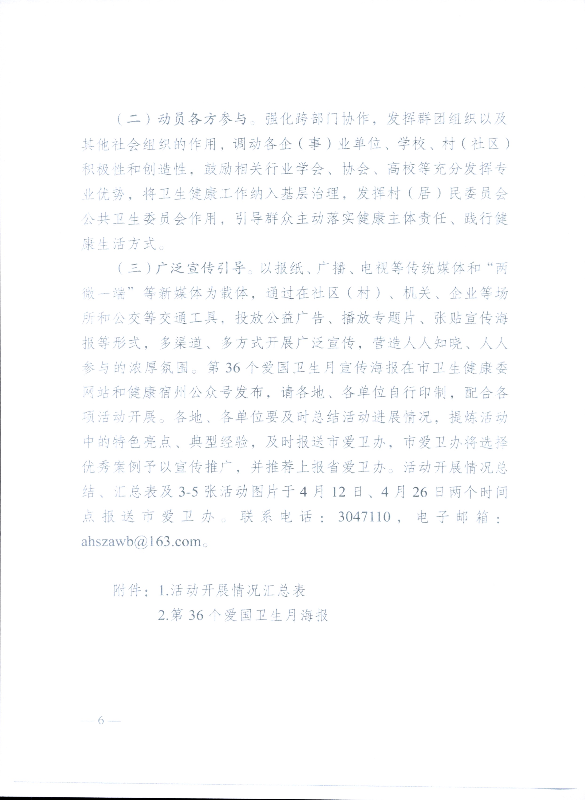 宿州藝文學(xué)校轉(zhuǎn)發(fā)關(guān)于印發(fā)《宿州市第36個(gè)愛(ài)國(guó)衛(wèi)生月活動(dòng)實(shí)施方案》的通知