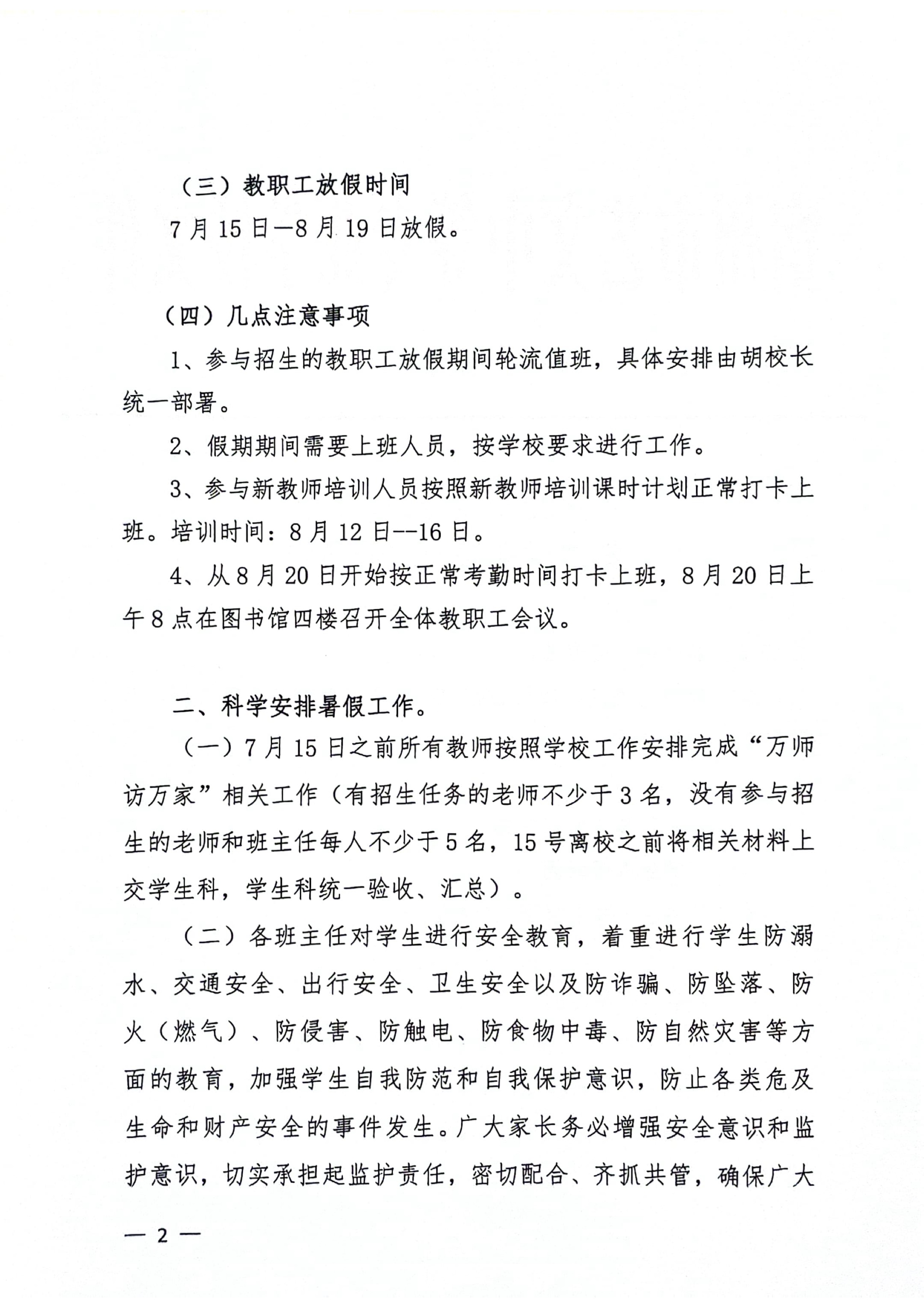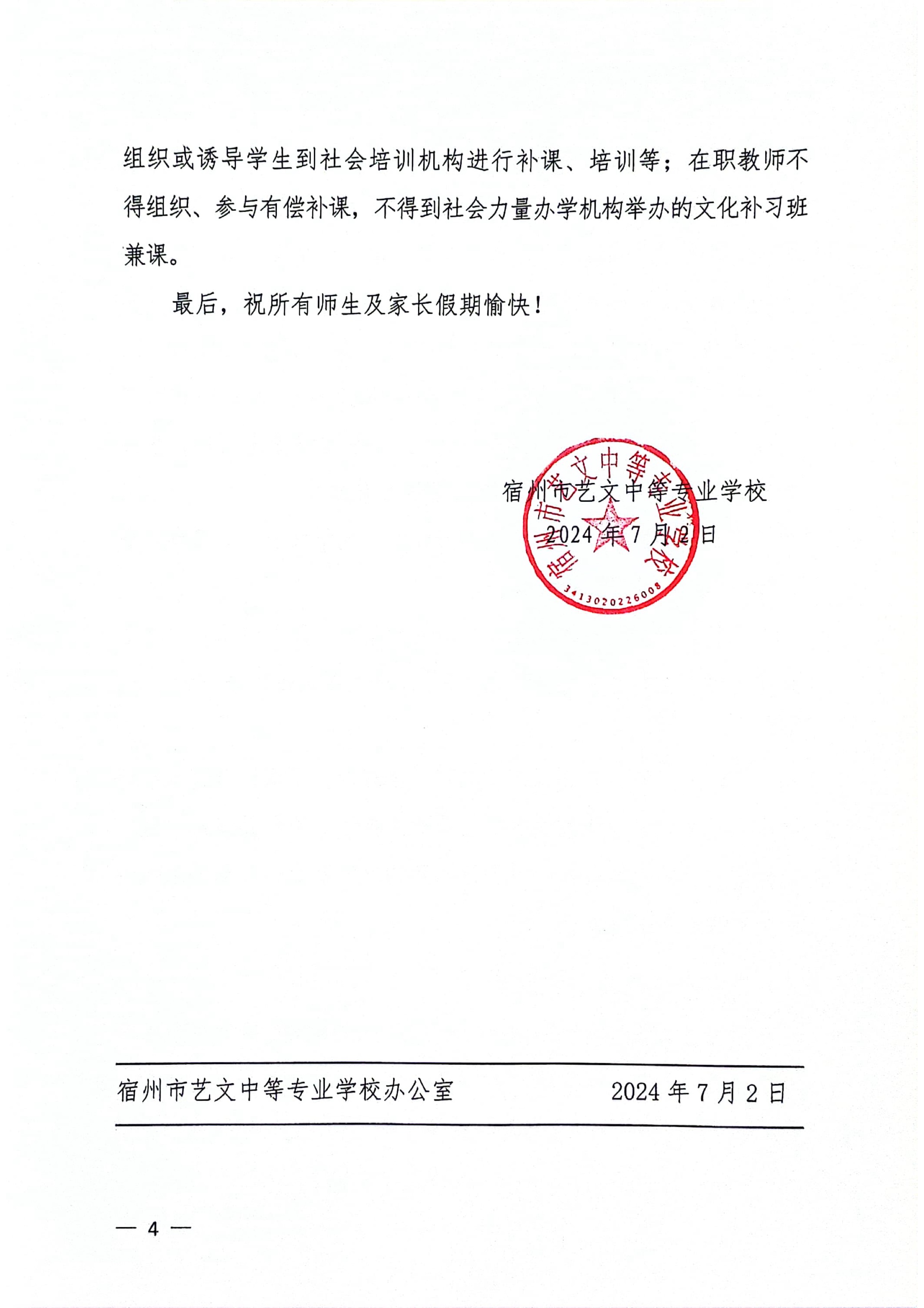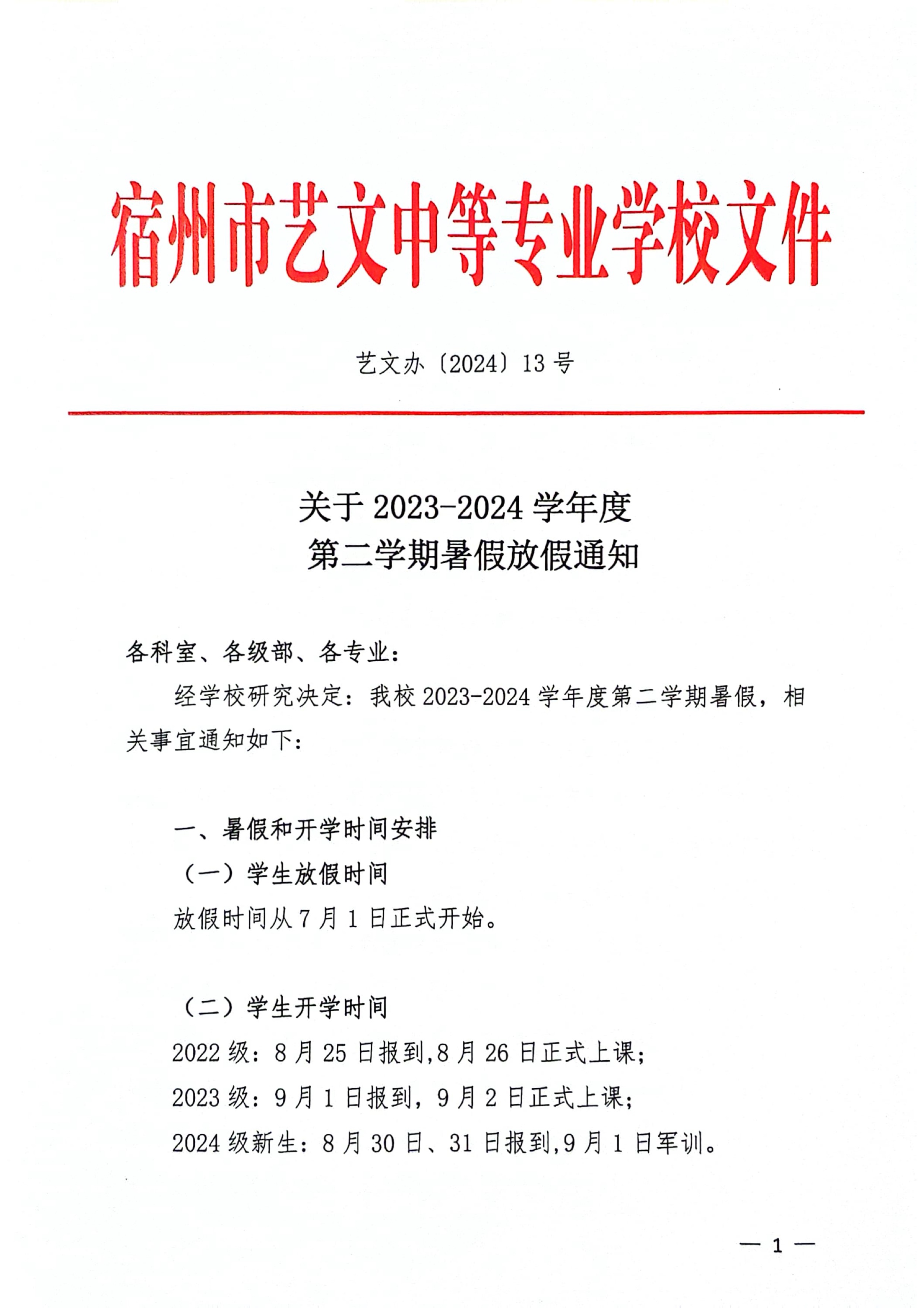 宿州市藝文中專2023-2024學(xué)年度第二學(xué)期暑假放假通知