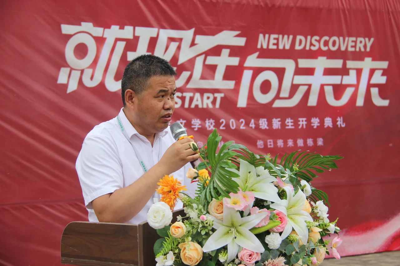 朱華校長(zhǎng)首先熱烈歡迎了2024級(jí)新同學(xué),并強(qiáng)調(diào)教師團(tuán)隊(duì)作為領(lǐng)航者的重要角色。朱校長(zhǎng)引用蔡元培先生的名言,表達(dá)了教育面向未來(lái)的核心理念,并宣布了學(xué)校即將申創(chuàng)胡吉亮名班主任工作室的計(jì)劃,彰顯了學(xué)校對(duì)卓越教育的持續(xù)追求。