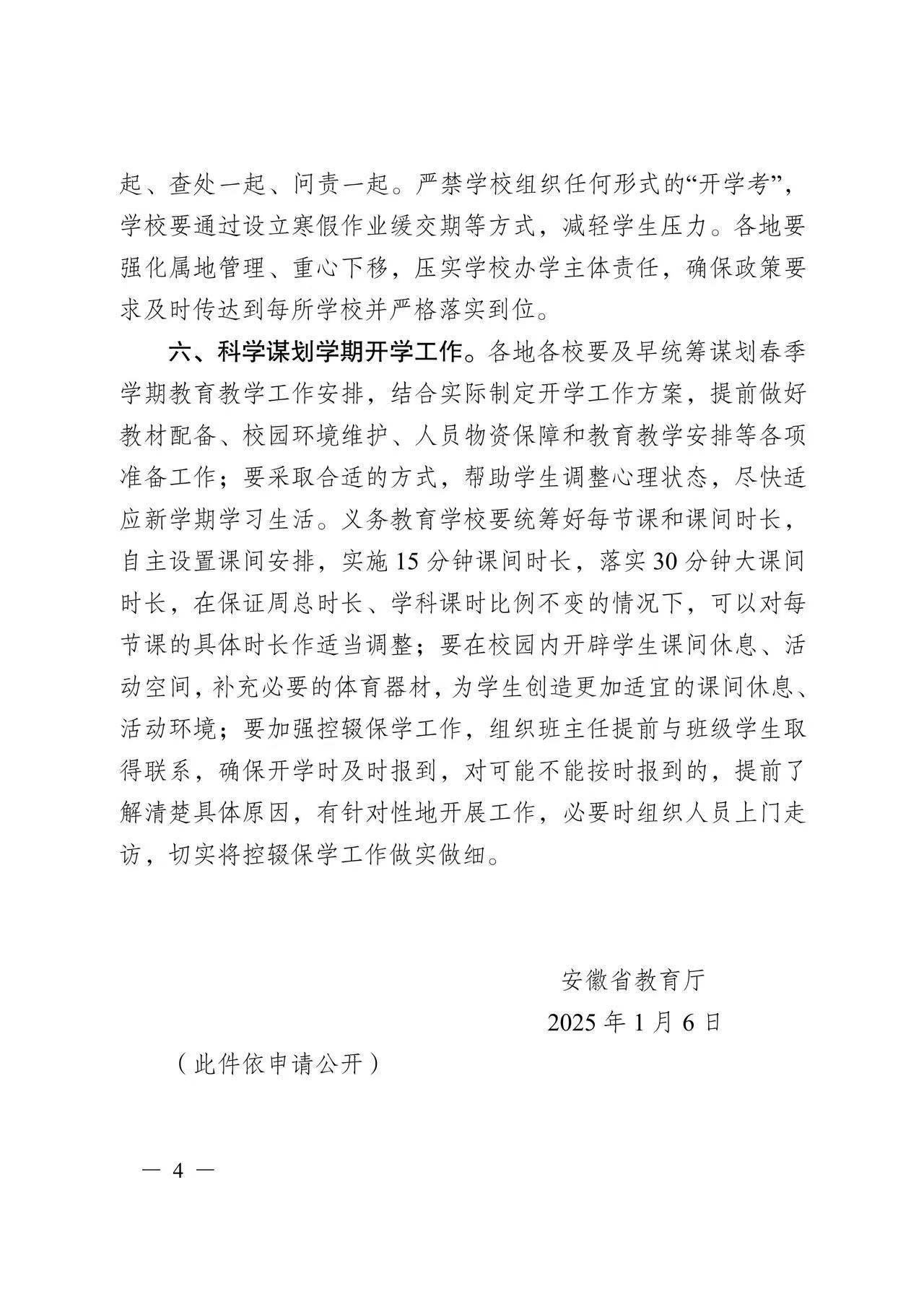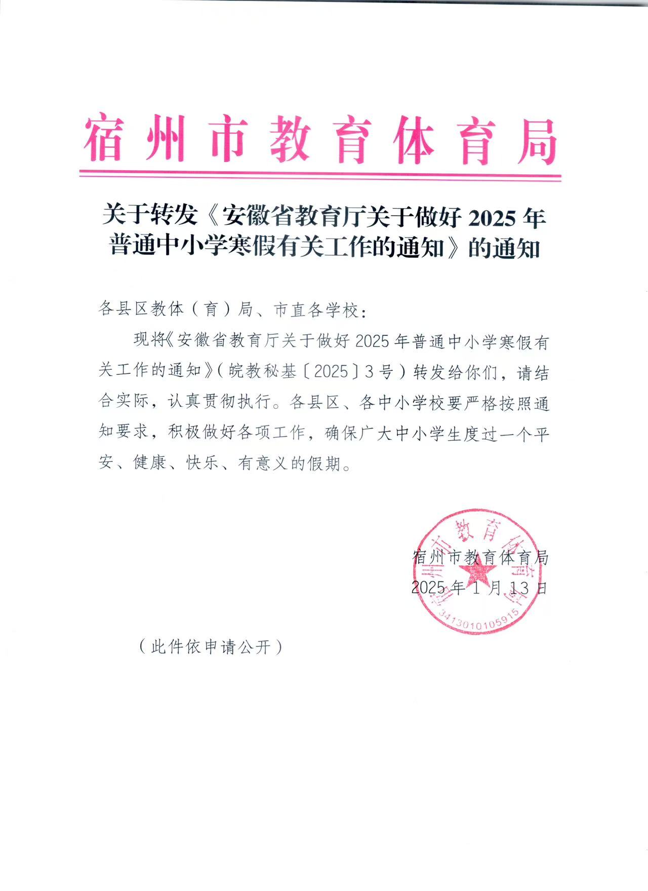 關(guān)于轉(zhuǎn)發(fā)《安徽省教育廳關(guān)于做好2025年普通中小學寒假有關(guān)工作的通知》的通知