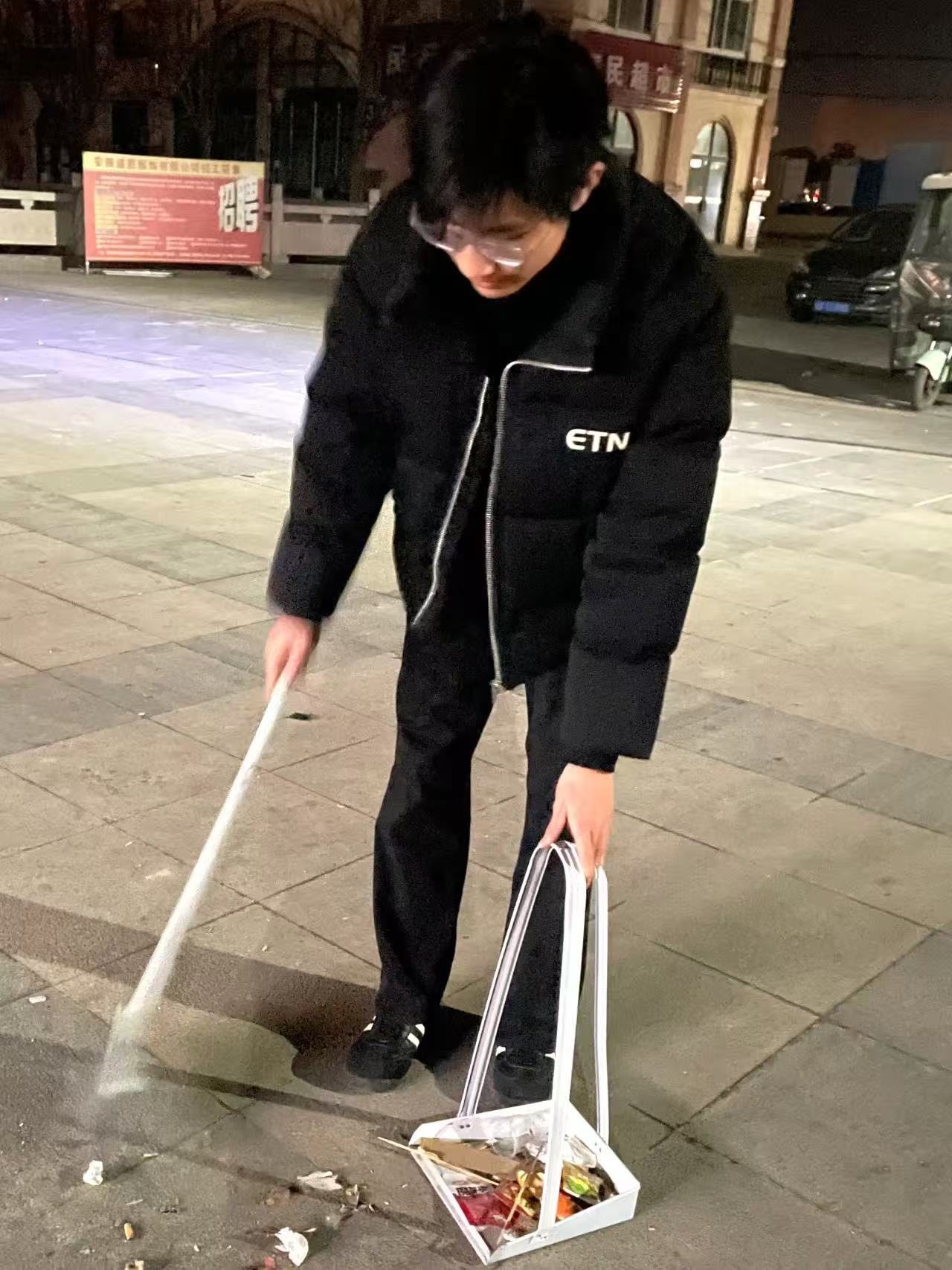 晚自習(xí)后,班級門口的散落垃圾總逃不過徐智豪的眼睛。他默默拿起掃把清理,以行動維護(hù)校園環(huán)境。班主任評價:“他如星辰般微小卻堅定,展現(xiàn)了新時代青年的自覺擔(dān)當(dāng)。”