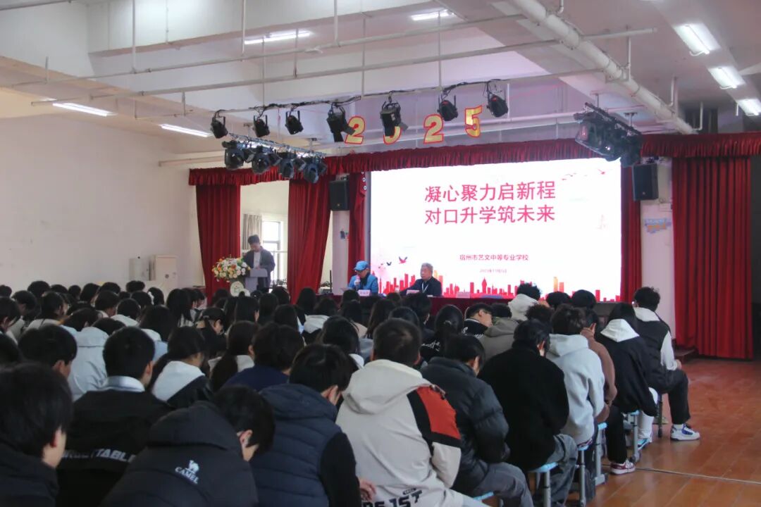 為了指引高考沖刺方向,增強迎考信心,激發(fā)拼搏精神,11月5日上午,宿州市藝文中等專業(yè)學校在圖書館隆重舉行2023級對口升學高考激勵動員大會。學校執(zhí)行校長朱華、教務科科長張國芳、23級年級組長石全文、對口班班主任及全體23級學生參加大會。