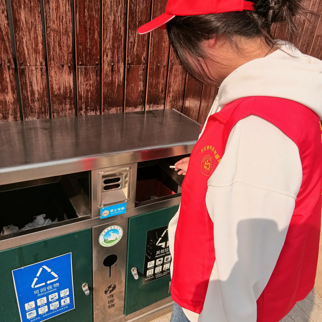 志愿者們動(dòng)手撿垃圾,并對(duì)垃圾進(jìn)行了分類(lèi)處理。