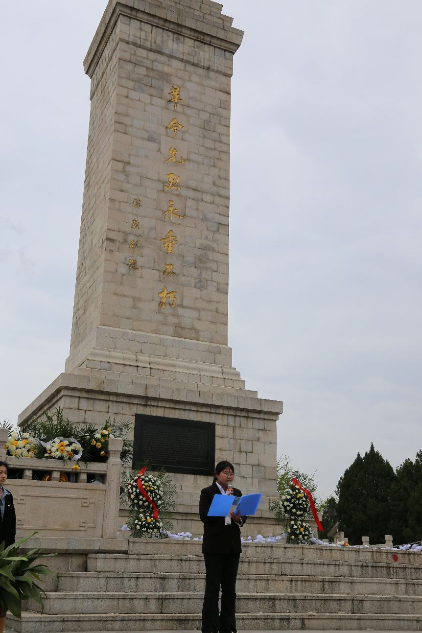 獻(xiàn)詞:學(xué)校領(lǐng)導(dǎo)馮沖、教師代表?xiàng)蠲?、學(xué)生代表劉孜在烈士紀(jì)念碑前獻(xiàn)詞。