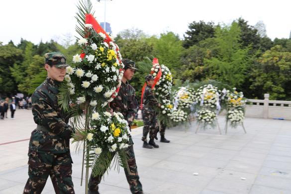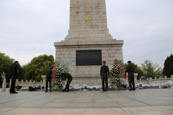 祭奠:烈士紀(jì)念碑前,哀樂(lè)響起,學(xué)生代表邁著緩慢的步伐,肅穆地向革命先烈敬獻(xiàn)花圈,主持人劉茜帶領(lǐng)全體師生默哀、宣誓,對(duì)革命先烈表示沉痛的哀悼。