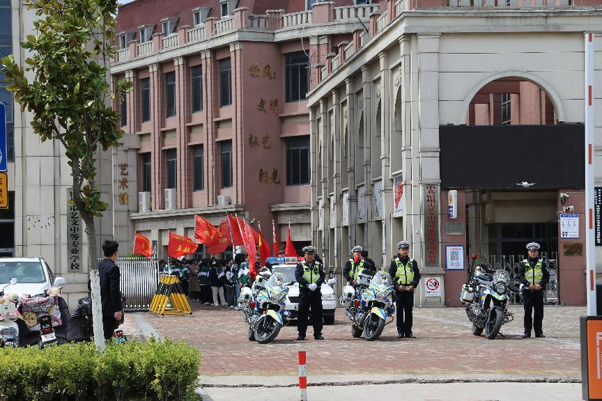 出發(fā):下午12時(shí)30分,兩排長(zhǎng)長(zhǎng)的隊(duì)伍,整齊劃一,同學(xué)們表情嚴(yán)肅,一步一步丈量著腳下的路。近兩個(gè)小時(shí)的徒步,沒(méi)有一個(gè)學(xué)生喊苦喊累,沒(méi)有一個(gè)學(xué)生掉隊(duì)。三輛交警鐵騎的護(hù)送,確保了學(xué)生安全。