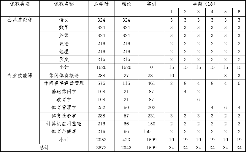 四、休閑體育服務(wù)與管理專業(yè)教學(xué)時間安排