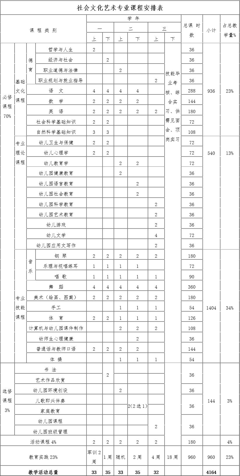 宿州市藝文中等專業(yè)學(xué)校各專業(yè)課程計劃安排