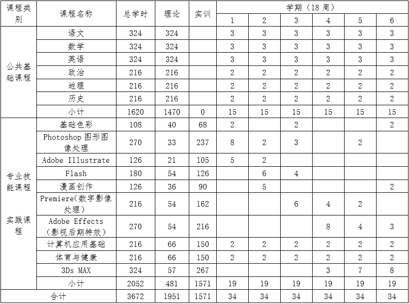 一、繪畫專業(yè)教學(xué)計劃安排(主干專業(yè))